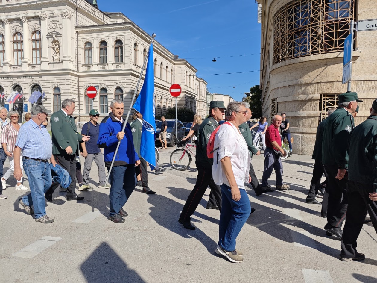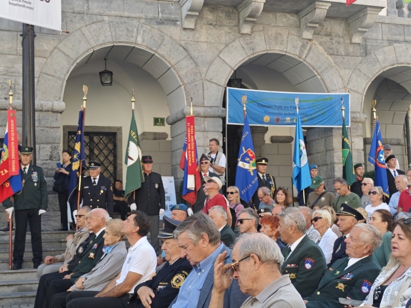 Udeležence pohoda je v pozdravil vodja oddelka za zaščito in reševanje Mestne Občine Ljubljana mag. Robert Kus, ki je poudaril, da mir ni le odsotnost vojn, ampak tudi družbeni proces, ki zahteva aktivnost vseh nas, da preprečimo nasilje, sovraštvo, diskriminacijo in neenakost. In da je pomembno, da ta dan ne ostale le obeležje preteklosti, temveč tudi opomnik, da moramo kot posamezniki in kot skupnost nenehno stremeti k svetu brez nasilja. Za veterane je mir tudi povezan z odgovornostjo, da se ne ponovijo grozote, ki so jim bili priča in da opozarjajo na vojne grozote.