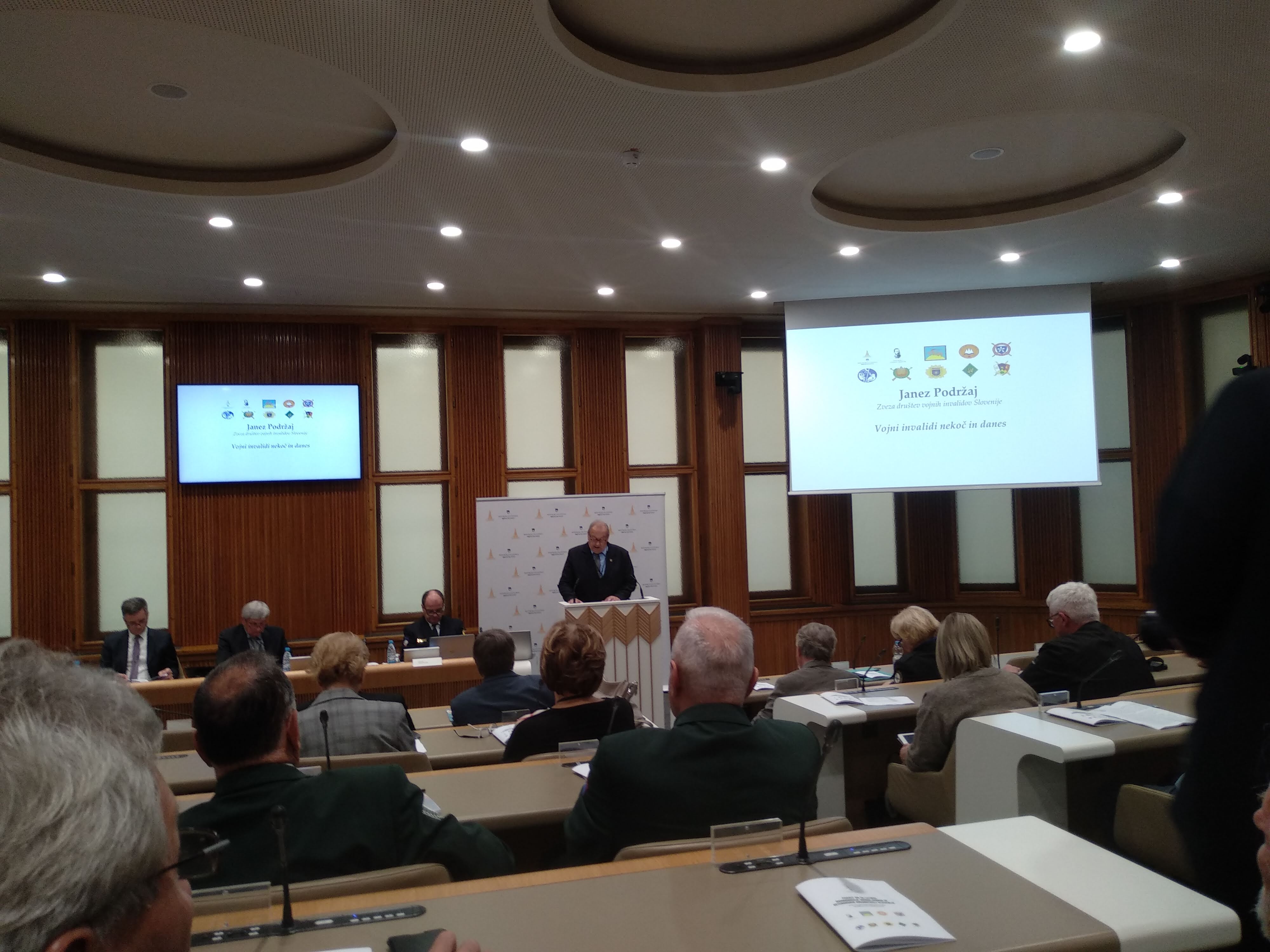 Predsednik Zveze društev vojnih invalidov Slovenije Janez Podržaj je predstavil zgodovinski prikaz skrbi za vojne invalide in njihovo organiziranost ter socialni položaj v današnjem času.
