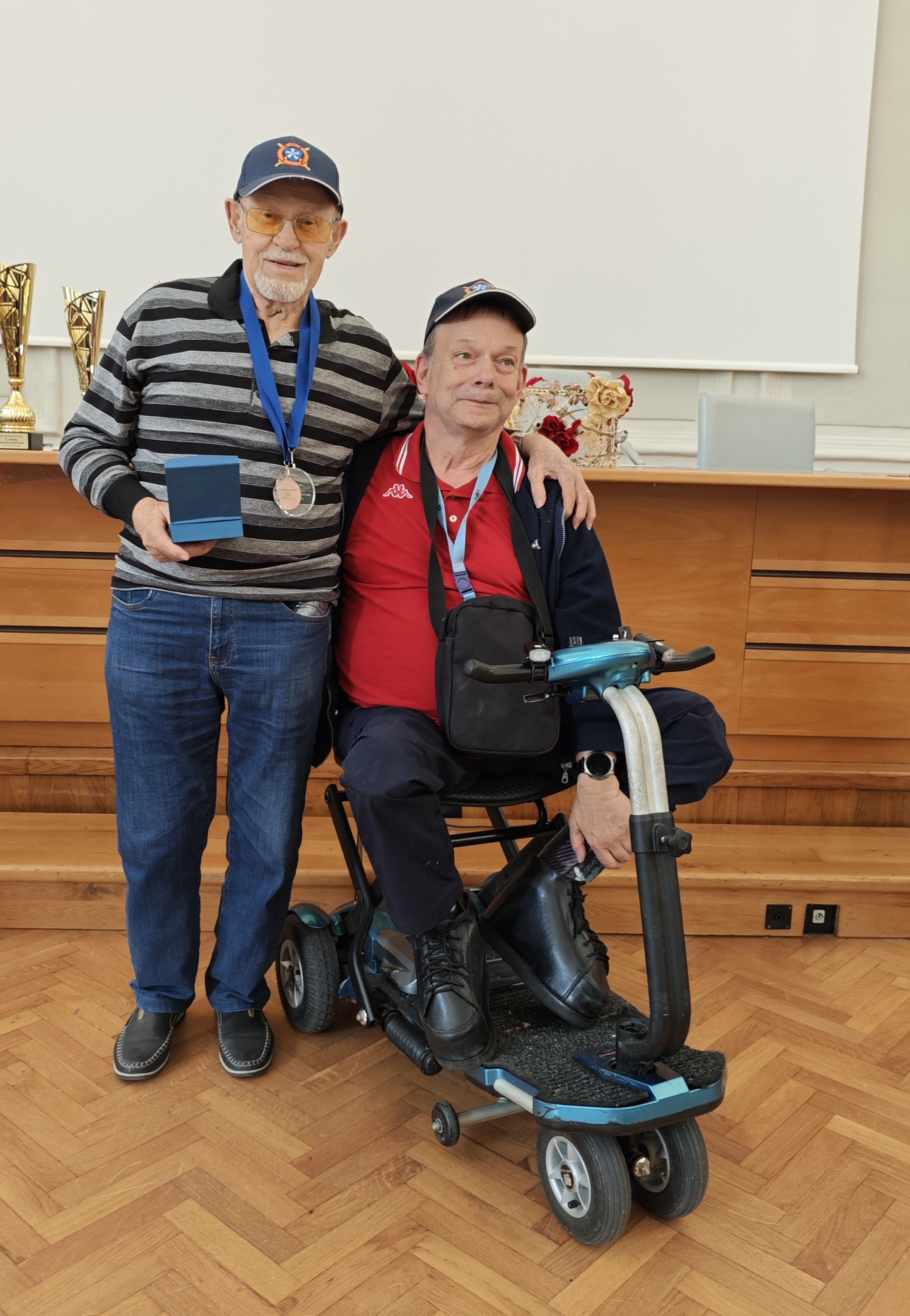 Vojna invalida, Čedomir Antić iz Društva Slovenske Istre Koper in Dušan Nahtigal iz dolenjskega društva vojnih invalidov, sta prejela priznanje za največ udeležb na športno rekreativnih prireditvah ZDVIS v preteklem letu.